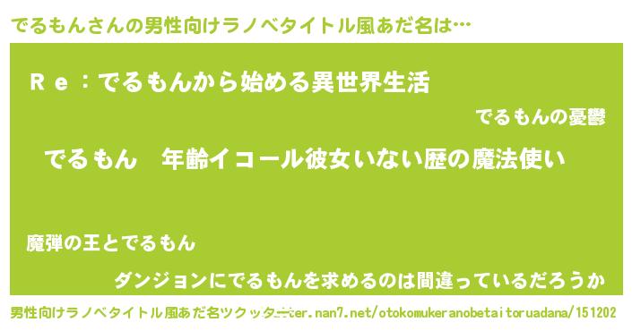 でるもんさんの男性向けラノベタイトル風あだ名をツクッター!