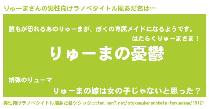 | 胡散臭い通販商品みたいなあだ名 | 『必ず成功するブレスレット…その名も「りゅーま」』 |