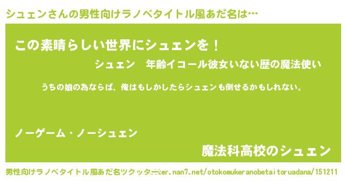 | 女子向けラノベタイトル風あだ名 | 『シュェンの婚約者』『シュェン恋絵巻』 |
