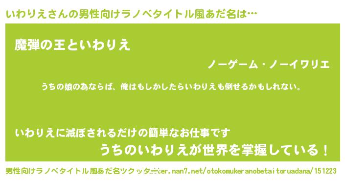 | ヒーロー風カッコイイあだ名 | 『ウルトラいわりえマン』『仮面イワダー』 |