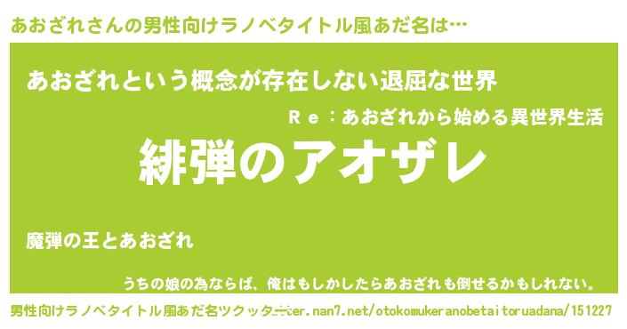 | 女子向けラノベタイトル風あだ名 | 『シンデレラあおざれ家の靴箱館』 |