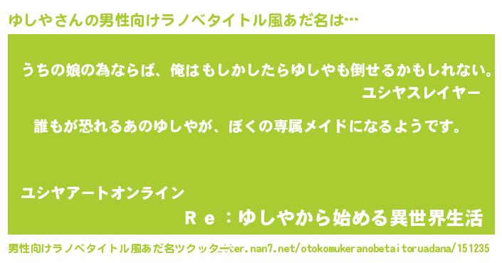 | ファンタジー風あだ名 | 『ユシディッシュ』『エターナルユシヤー』 |