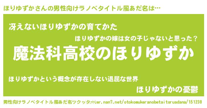 | ヒーロー風カッコイイあだ名 | 『超時空戦士ホリユズカ』『魔戒騎士ホリ』 |