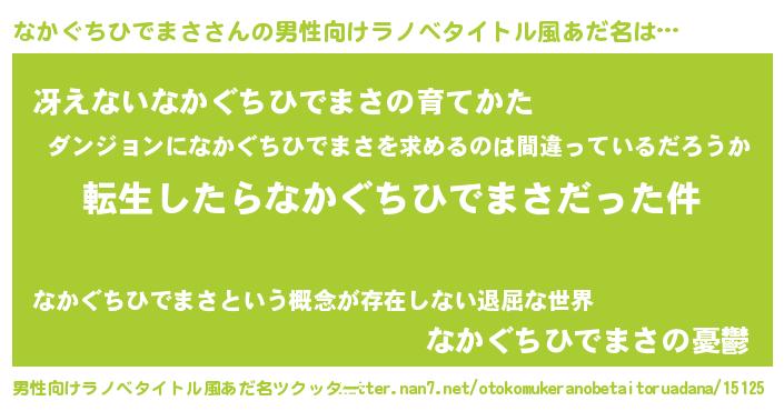| 胡散臭い通販商品みたいなあだ名 | 『モテモテ間違いなし霊験あらたかなお札…その名も「なかぐちひでまさ」』 |