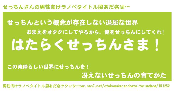 ヘコむあだ名 | 『せっちん(小並感)』『豆乳』 |