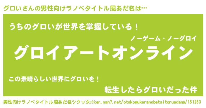 | ヒーロー風カッコイイあだ名 | 『スーパーグロイ』『天空の使者グロい』 |