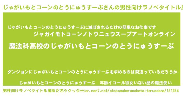 | 女子向けラノベタイトル風あだ名 | 『じゃがいもとコーンのとうにゅうすーぷアンティーク』 |