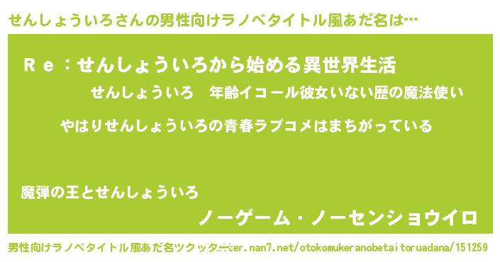 | ファンタジー風あだ名 | 『エターナルセンショウイロー』 |