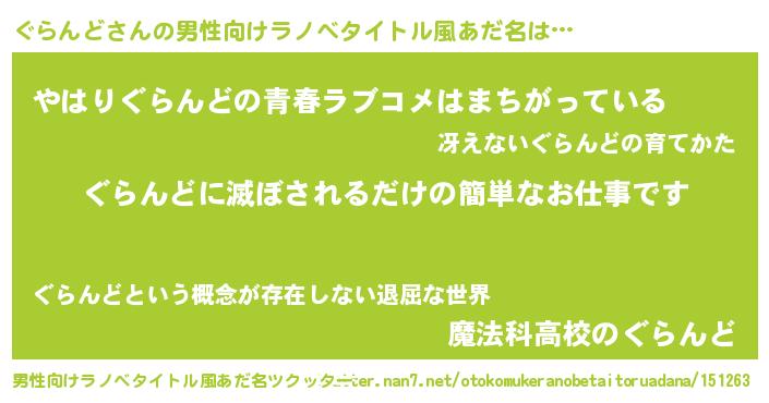 | 意味不明あだ名 | 『ぐらんどフォーエバー』『自称ぐらんど』 |