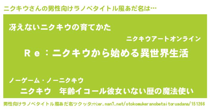 | 女子向けラノベタイトル風あだ名 | 『闇のニクキウ』『死神ニクキウの再婚』 |