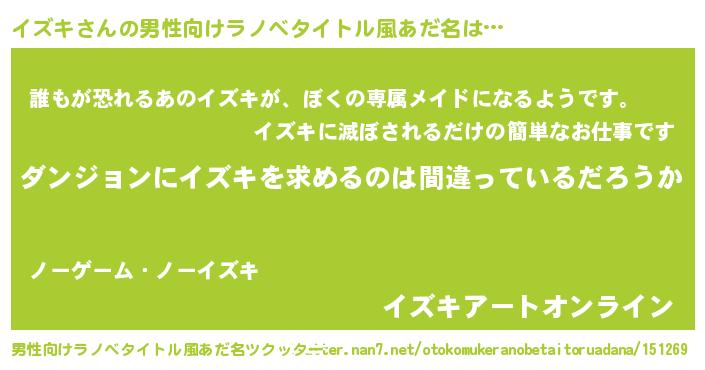 | 女子向けラノベタイトル風あだ名 | 『イズキは平凡を望む』 |