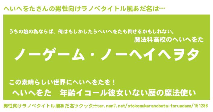 | 女子向けラノベタイトル風あだ名 | 『へいへをた恋絵巻』 |