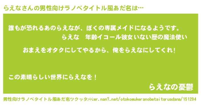 | ヘコむあだ名 | 『らえな(笑)』『らえにー』 |