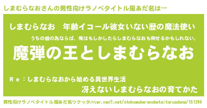| 女子向けラノベタイトル風あだ名 | 『乙女ゲームの破滅フラグしかない悪役しまむらなおに転生してしまった…』 |