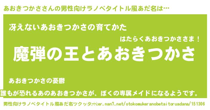 | 女子向けラノベタイトル風あだ名 | 『乙女ゲームの破滅フラグしかない悪役あおきつかさに転生してしまった…』 |
