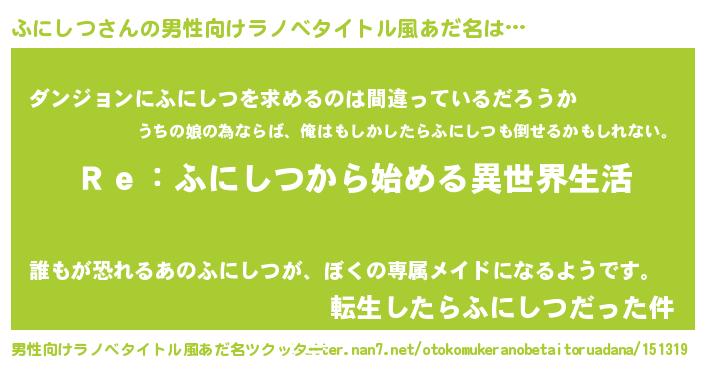 | 女子向けラノベタイトル風あだ名 | 『闇のふにしつ』『ふにしつの婚約者』 |