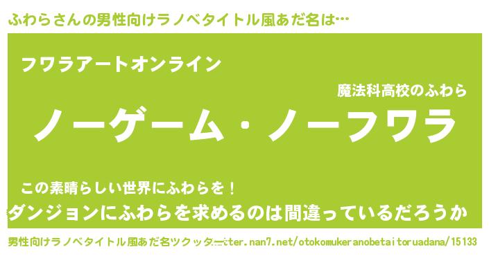 | 女子向けラノベタイトル風あだ名 | 『死神ふわらの再婚』 |
