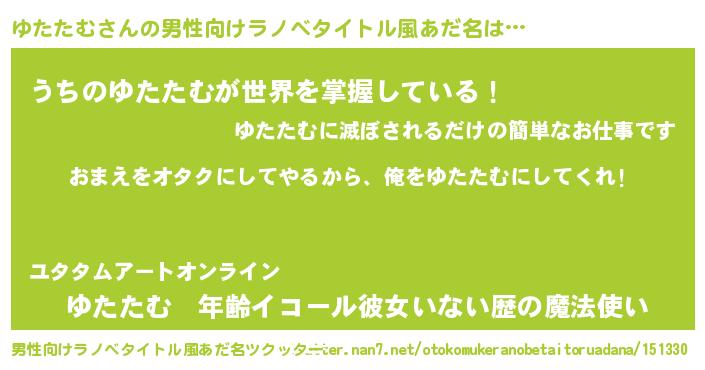 | ヒーロー風カッコイイあだ名 | 『正義の使者ゆたたむ』『ネオユタタム』 |