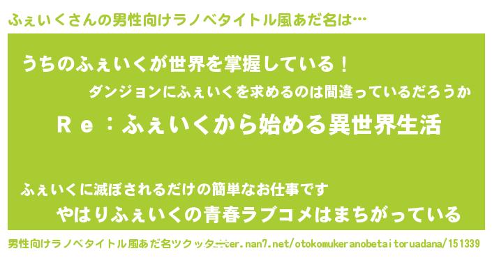 | 女子向けラノベタイトル風あだ名 | 『ふぇいくストレイドッグス』 |