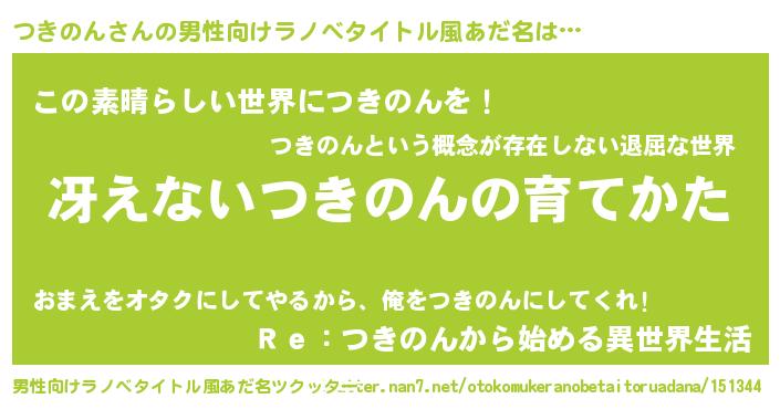 | 意味不明あだ名 | 『住所不定無職つきのん(50歳)』 |