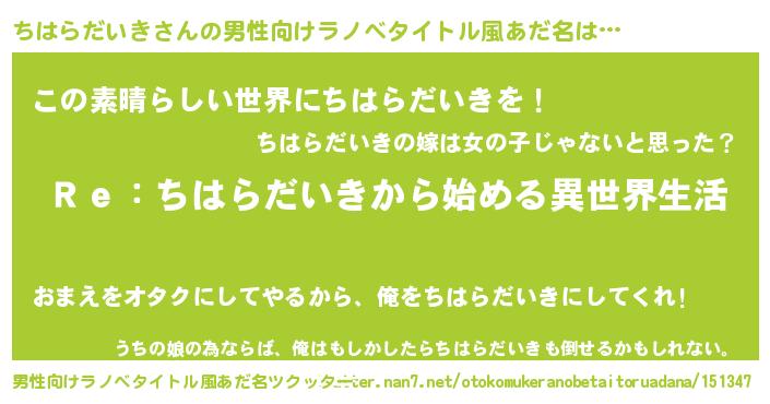 | 意味不明あだ名 | 『自称ちはらだいき』 |