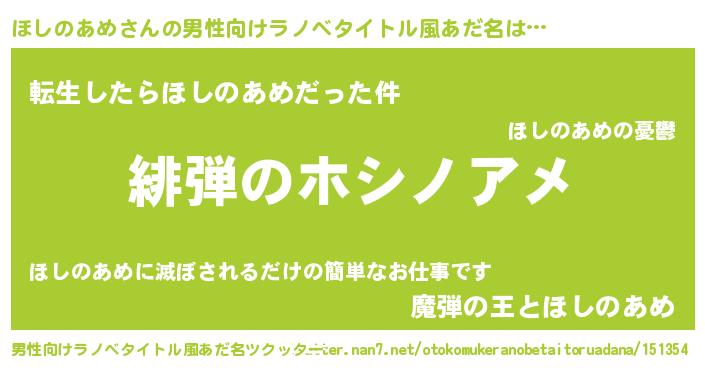 | 女子向けラノベタイトル風あだ名 | 『シンデレラほしのあめ家の靴箱館』 |
