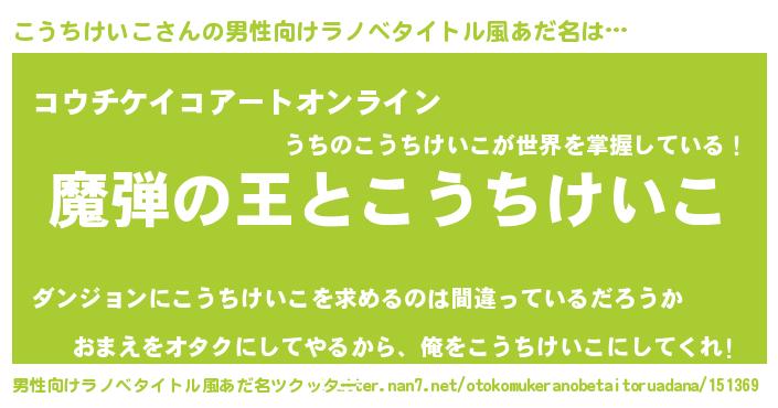 | 女子向けラノベタイトル風あだ名 | 『こうちけいこが死なない童話 林檎のこうちけいこの診療簿』 |