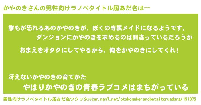 ヘコむあだ名 | 『かやのき(笑)』『酢こんぶ』 |