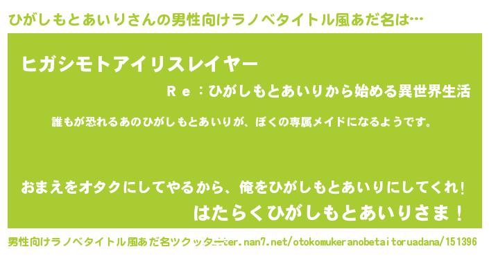 | 意味不明あだ名 | 『永久保存ひがしもとあいり』 |