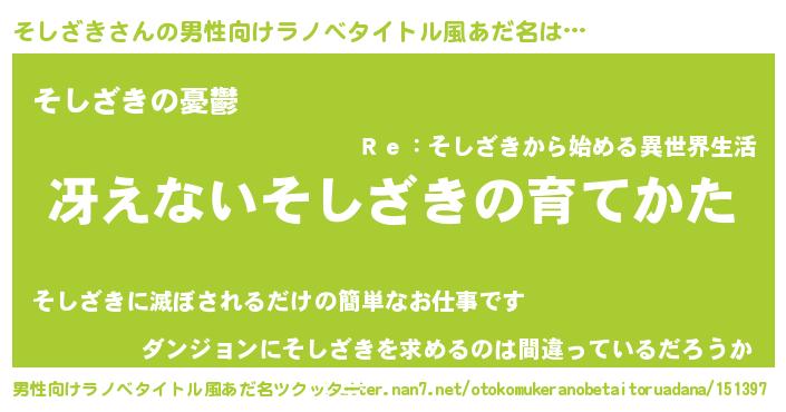 | 女子向けラノベタイトル風あだ名 | 『男装そしざきの憂鬱な任務』 |