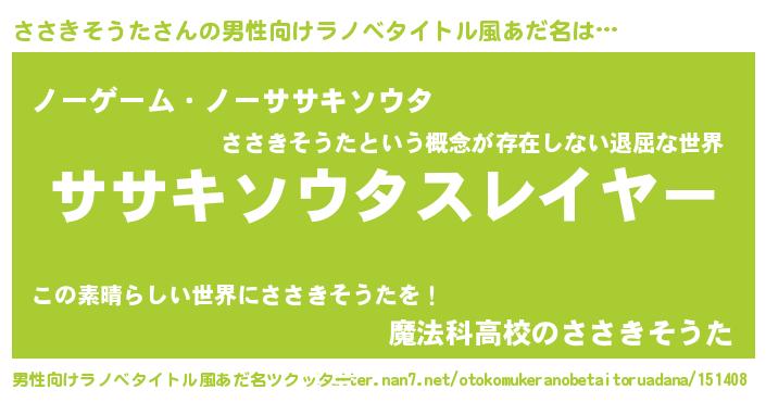 | 胡散臭い通販商品みたいなあだ名 | 『100人中100人が認めたイリジウム磁石…その名も「ささきそうた」』 |