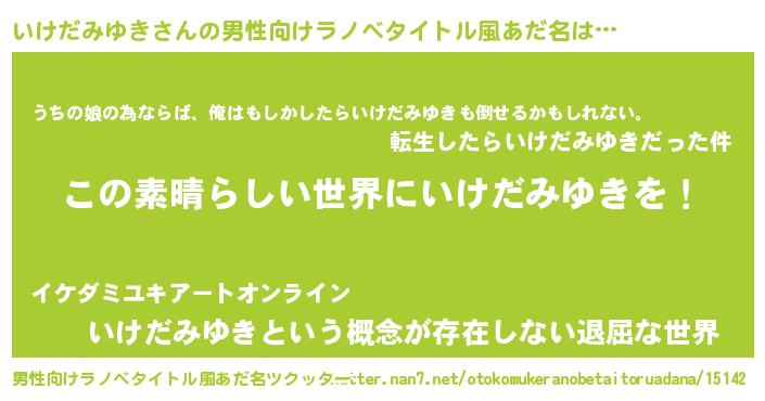 | 女子向けラノベタイトル風あだ名 | 『乙女ゲームの破滅フラグしかない悪役いけだみゆきに転生してしまった…』 |