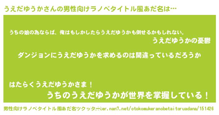 | 女子向けラノベタイトル風あだ名 | 『うえだゆうかの卵を拾いまして』 |