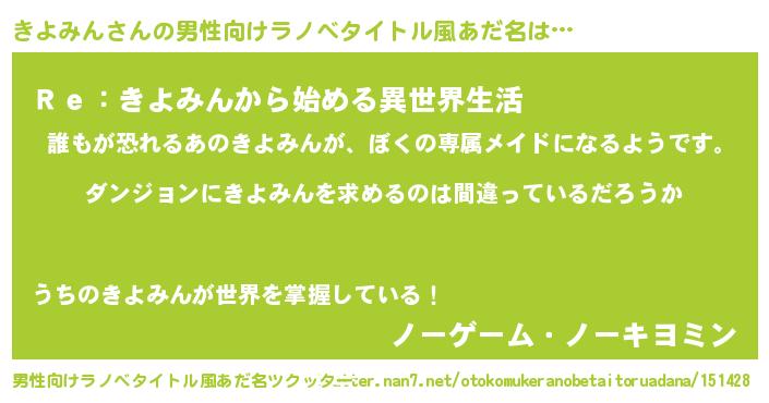 | 女子向けラノベタイトル風あだ名 | 『きよみんは平凡を望む』『闇のきよみん』 |