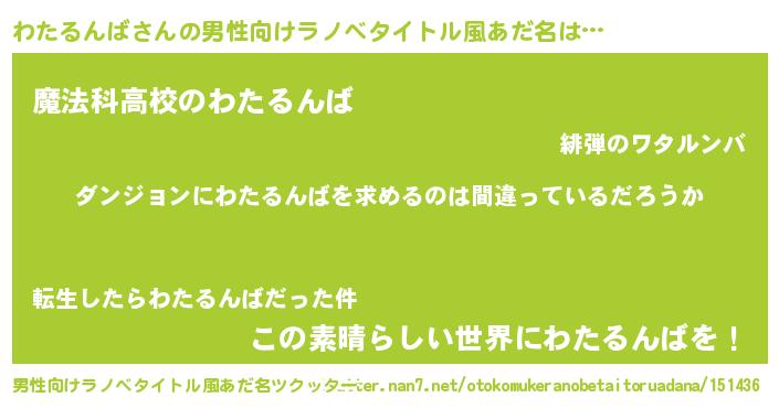 | 胡散臭い通販商品みたいなあだ名 | 『信頼と実績のサプリメント…その名も「わたるんば」』 |