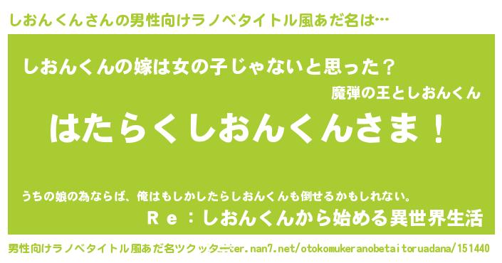 | 胡散臭い通販商品みたいなあだ名 | 『信頼と実績のサプリメント…その名も「しおんくん」』 |