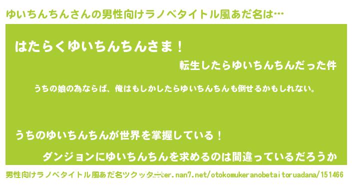 | 女子向けラノベタイトル風あだ名 | 『ゆいちんちんの婚約者』 |