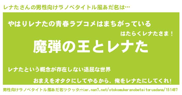 | ヘコむあだ名 | 『豆乳』『レナた(爆)』『レナっ子』 |
