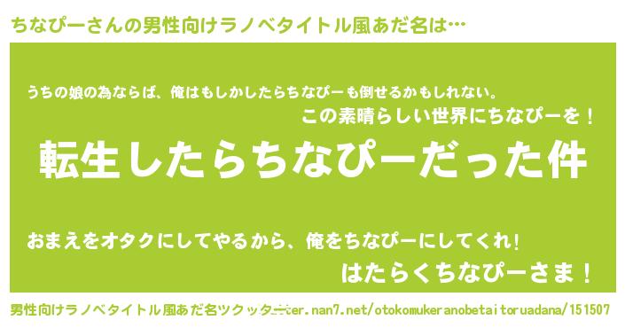 | 胡散臭い通販商品みたいなあだ名 | 『世界が平和になる高級そうな皿…その名も「ちなぴー」』 |