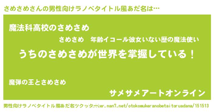 | 意味不明あだ名 | 『自称さめさめ』『ペロリンさめさめ』 |