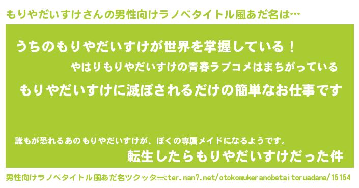 | 女子向けラノベタイトル風あだ名 | 『横柄もりやだいすけと宰相陛下』 |