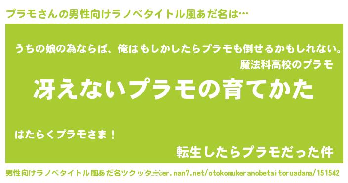 | 恥ずかしいあだ名 | 『プラっちょ』『プラモデラックス』 |