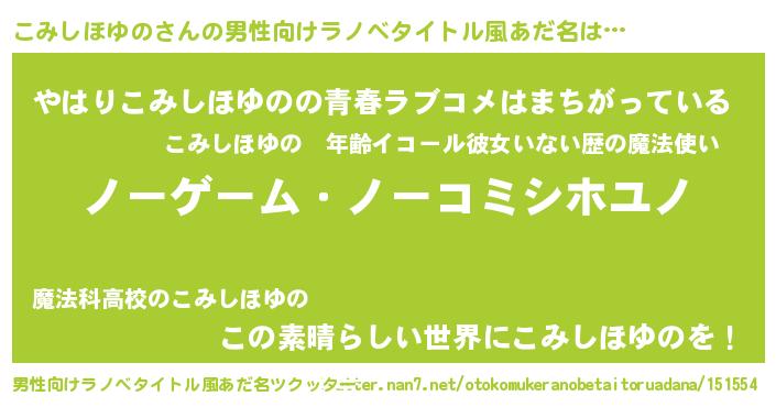 | 女子向けラノベタイトル風あだ名 | 『死神こみしほゆのの再婚』 |