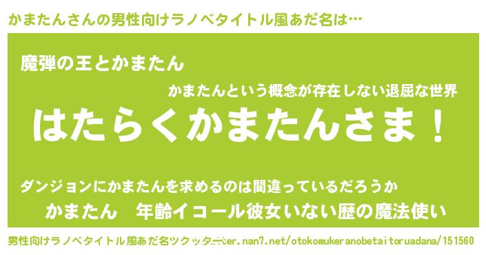 | 意味不明あだ名 | 『住所不定無職かまたん(10歳)』 |