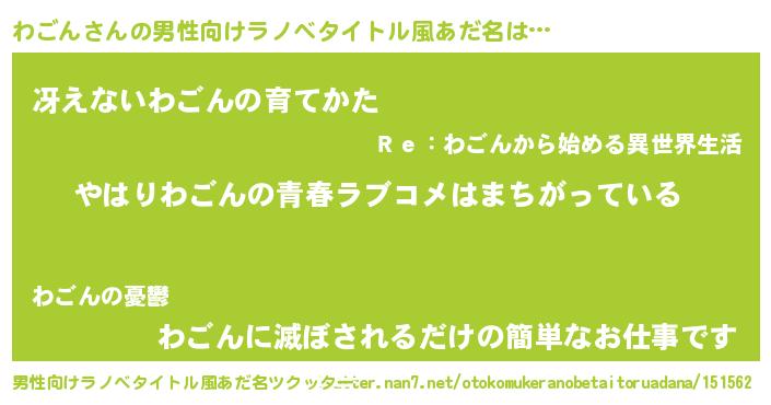 | 女子向けラノベタイトル風あだ名 | 『わごんの雑貨屋さん』 |