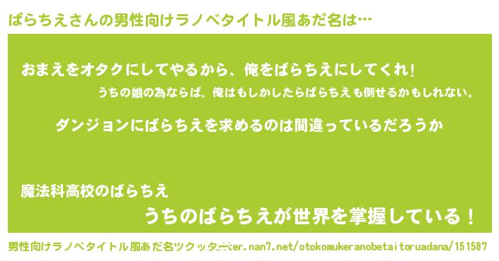 ばらちえさんの男性向けラノベタイトル風あだ名をツクッター!