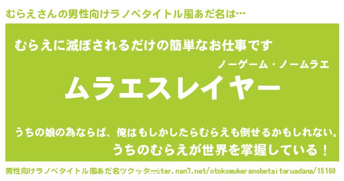 | 女子向けラノベタイトル風あだ名 | 『婚約破棄系悪役むらえに転生したので、保身に走りました。』 |
