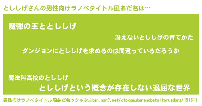 | 女子向けラノベタイトル風あだ名 | 『とししげは平凡を望む』 |