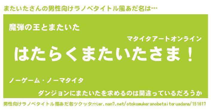 | ヒーロー風カッコイイあだ名 | 『仮面マタダー』『魔戒騎士マタ』 |