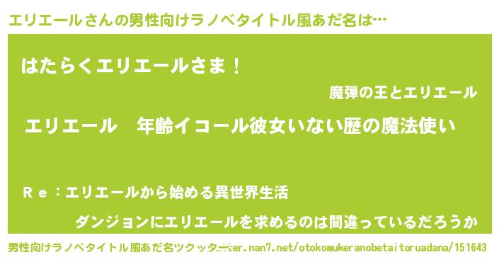 | 女子向けラノベタイトル風あだ名 | 『エリエールの玉の輿計画!』 |